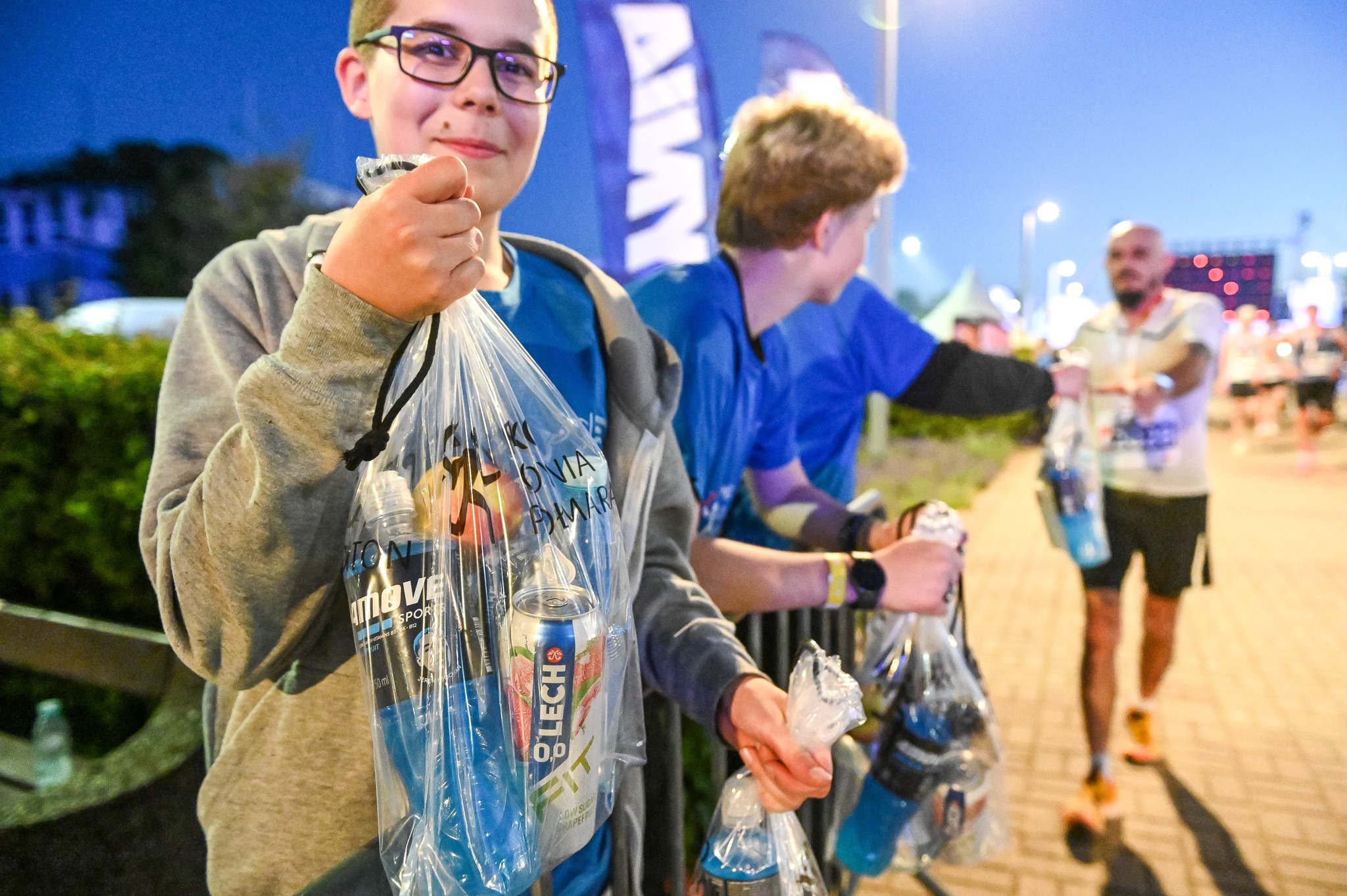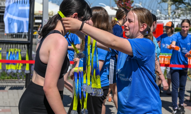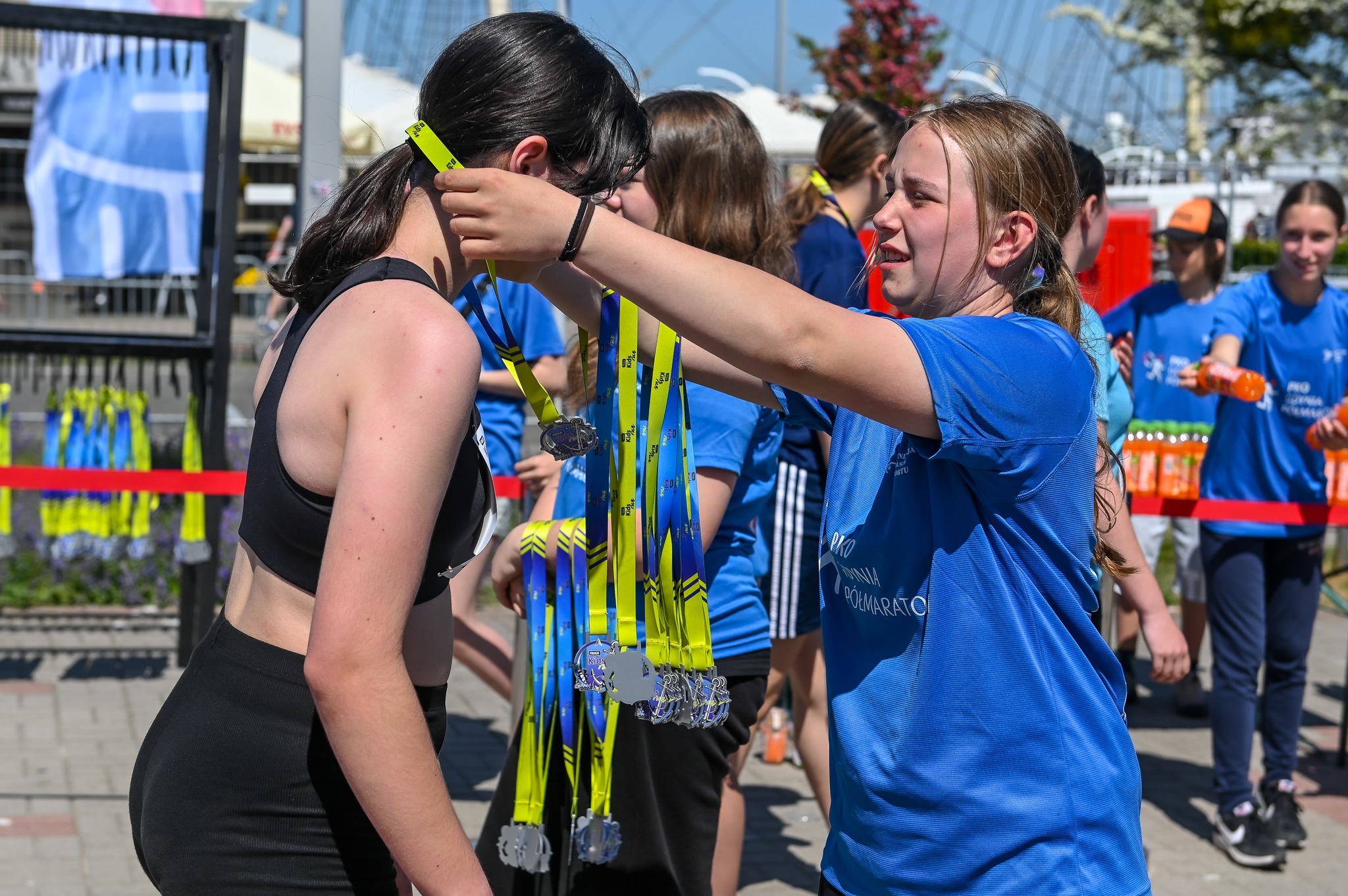 Helping in the finish area – guiding participants, handing out medals and “recovery bags”