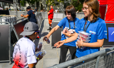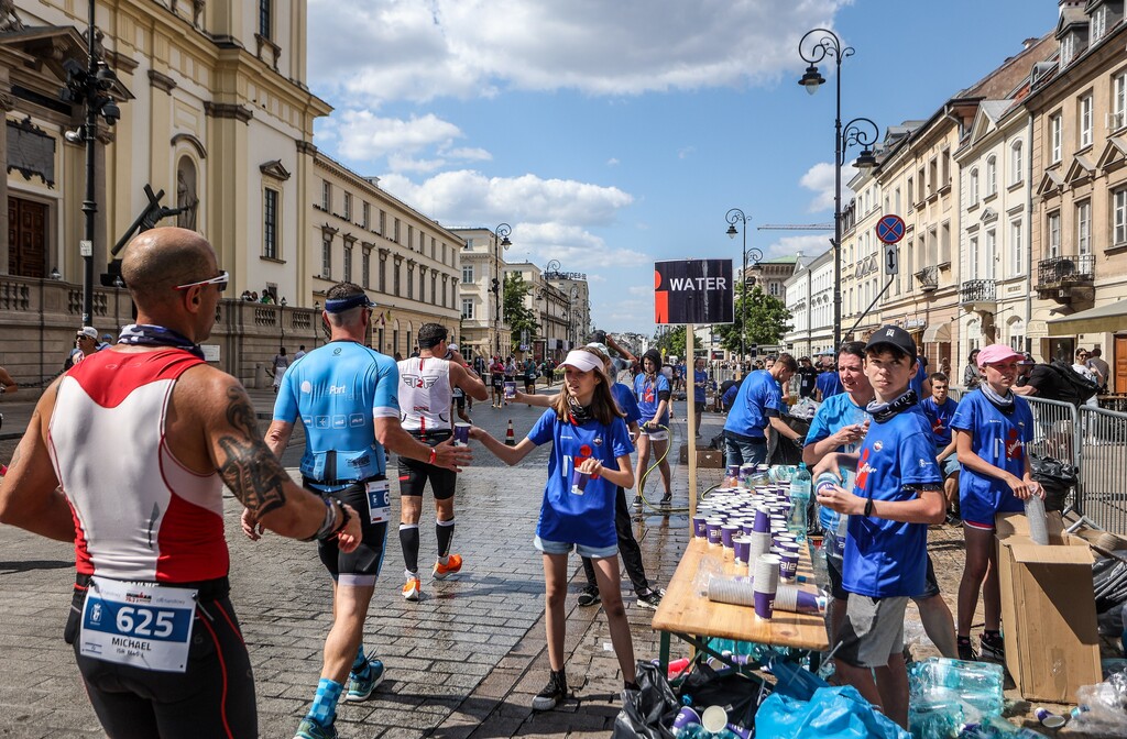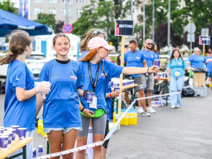 Pomoc na stacjach odżywczych (rozlewanie wody, izotoników, podawanie batonów/owoców)
